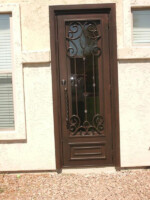 These are custom, hand-made screen and storm doors created for residential and commercial use. The doors are created to protect your home while enhancing your entryways with an elegant taste of ornamental iron. We take special care with our custom-made Arizona security doors because we know that they are built to not only look nice but protect your home and your loved ones as well.