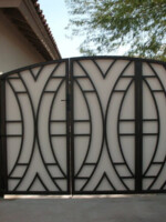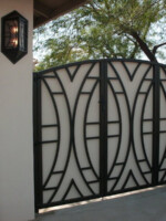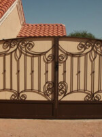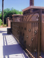 Landmark Iron offers gate operators for residential, commercial and industrial uses. Operators are available for swing gates, slide gates. Some of the options available include: interior and exterior controls, radio controls, digital keypad entry systems, card controls, programmable card readers, telephone entry systems, vehicle loop detectors, time delay systems, photoelectric eyes, intercom systems and warning devices.